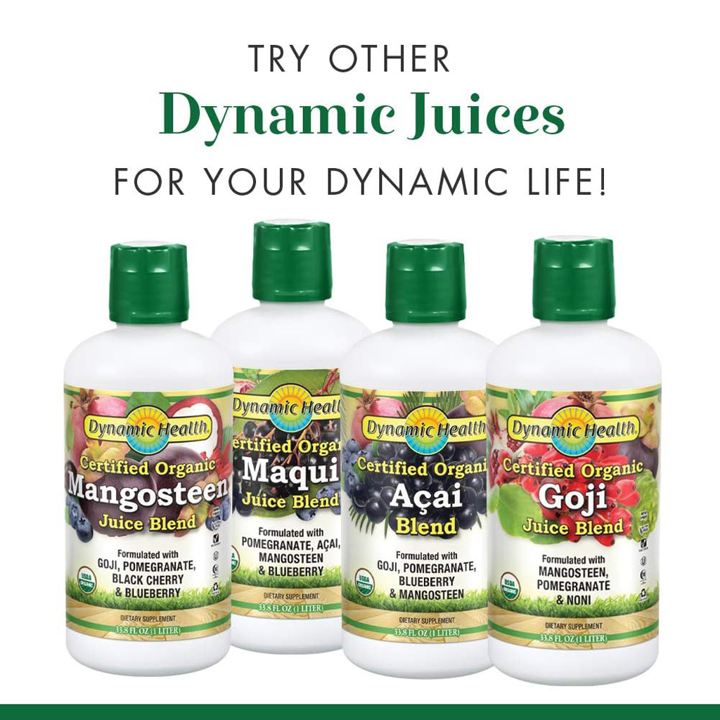 Dynamic Health adheres to strict quality standards: BPA Free, Gluten Free, Vegetarian, Kosher, Certification from the Islamic Food and Nutrition Council of America, Recycle, Organic.
